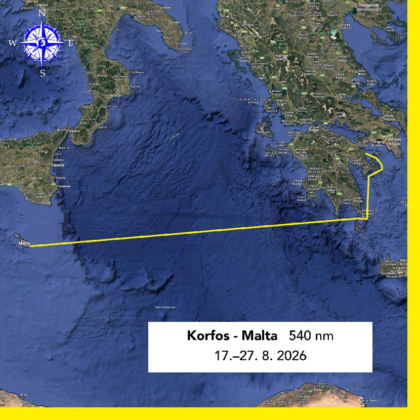 V druhé půlce srpna zvedneme kotvu a vyplujeme směrem na Maltu. Začátek plavby bude spíše turistická plavba po ostrovech zakončená cca 300Nm dlouhou plavbou z řeckých ostrovů na Maltu.